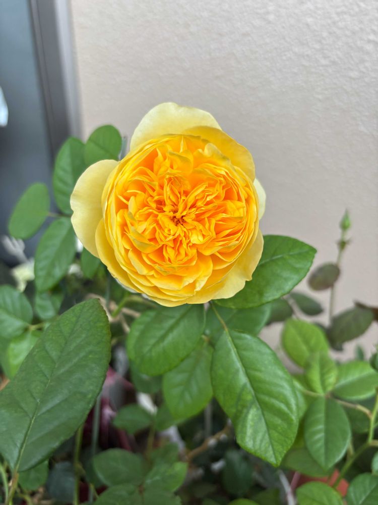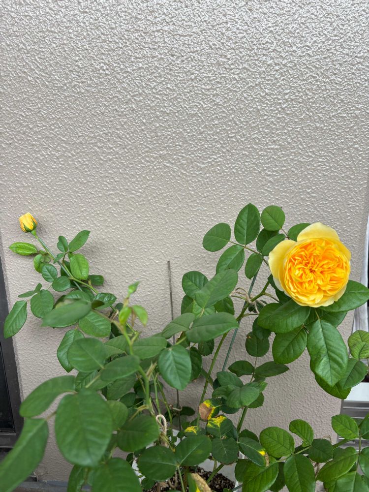 ①ベランダのグラハムトーマス2番花、今朝見たら可愛く開花してました🙌