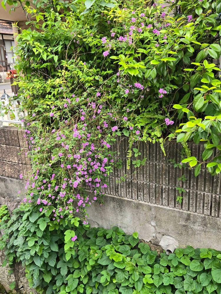狭い庭で主に鉢植えでいろいろな花を育ててます。手入れせず放任しているのでジャングル状態です。
