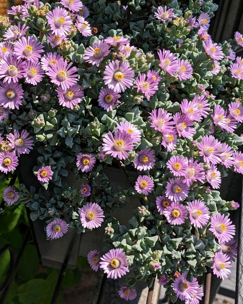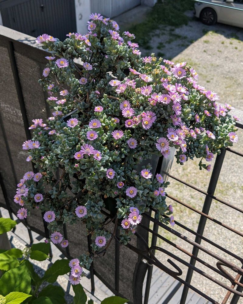 去年の秋に園芸店の片隅で売れ残ってカラッからになっていたオスクラリア白鳳菊。野生的に広がる感じの枝ぶりとコロコロした葉っぱの色が気に入って、どんな花が咲くかも知らずに購入。こんなに沢山いっぺんに咲きそろうとは!🩷💜🩷