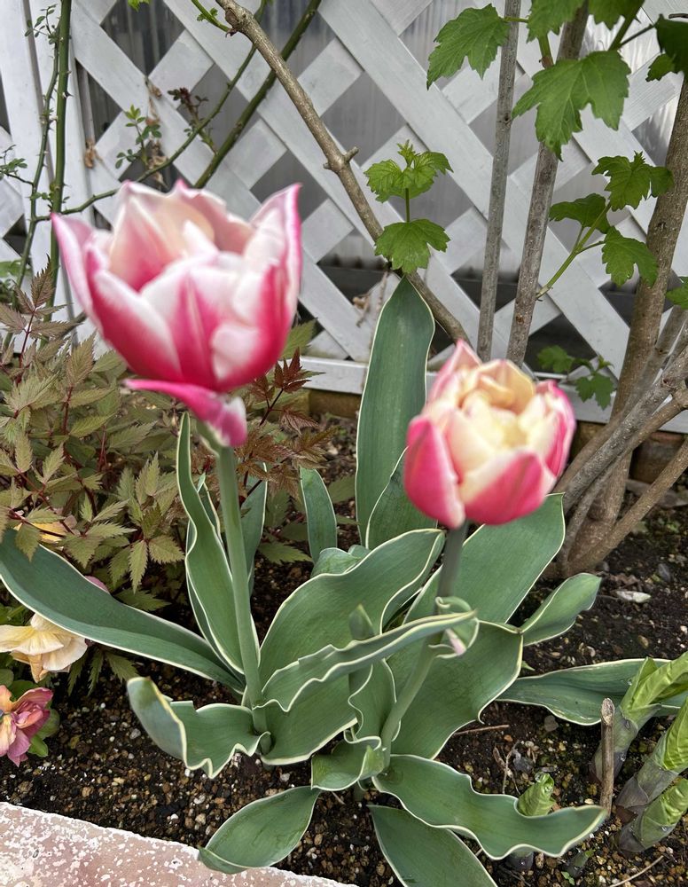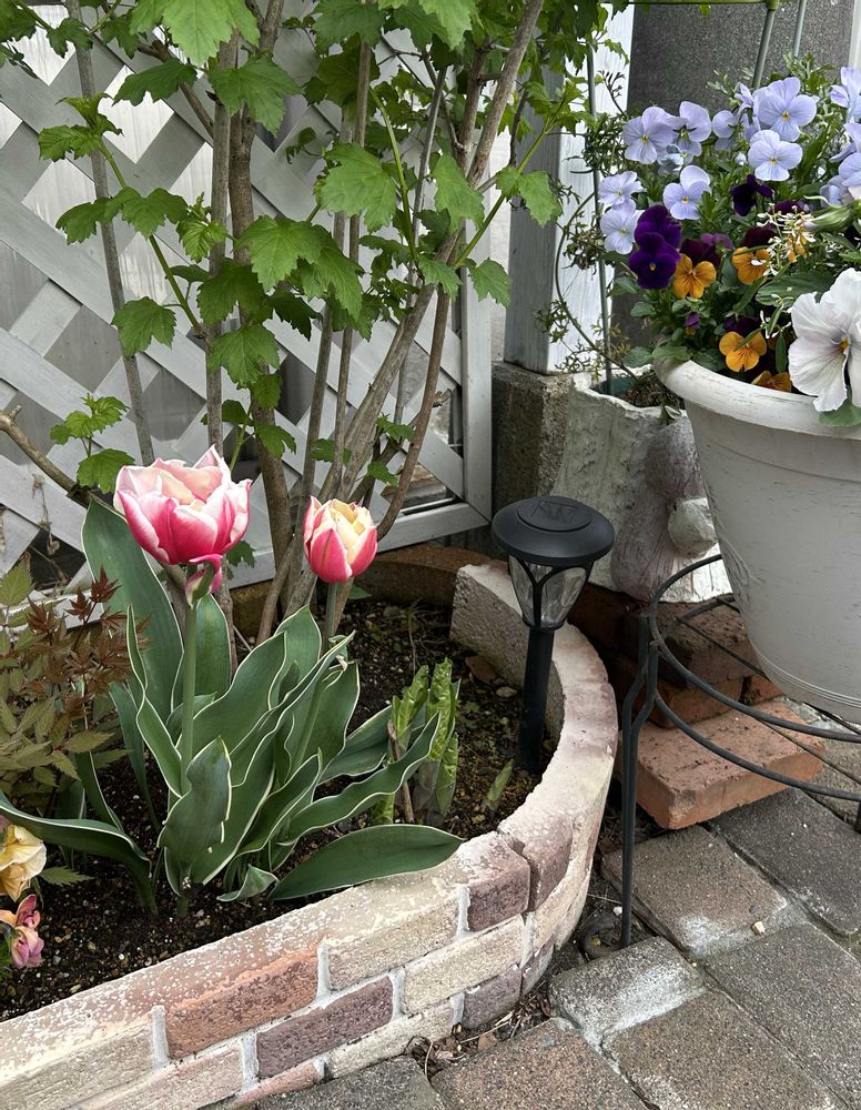 玄関アプローチの方のチューリップ🌷も咲きました。この子は一昨年から植えっぱなし💦裏庭のは掘り上げて10月くらいに、また植えたんですが、植えっぱなしでも出ましたねー😊今年は掘り上げますが3年もいけるかな?週末、今年お迎えのペチュニアやオステオスペルマムを育成スリットに入れました。