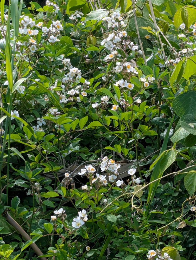 朝ウォークの河原に小さな白い花が一面に咲いてます。