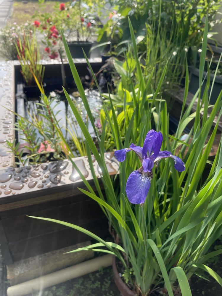 鉢のアヤメが一輪咲きました、株分けを怠っていたので今年はこれだけになりそうです。