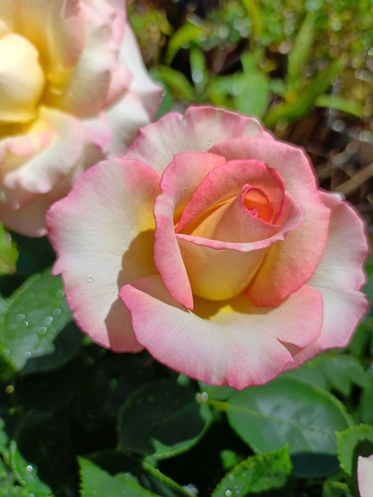 サーモンピンクの覆輪が優しい感じで、ほんわか系のバラです