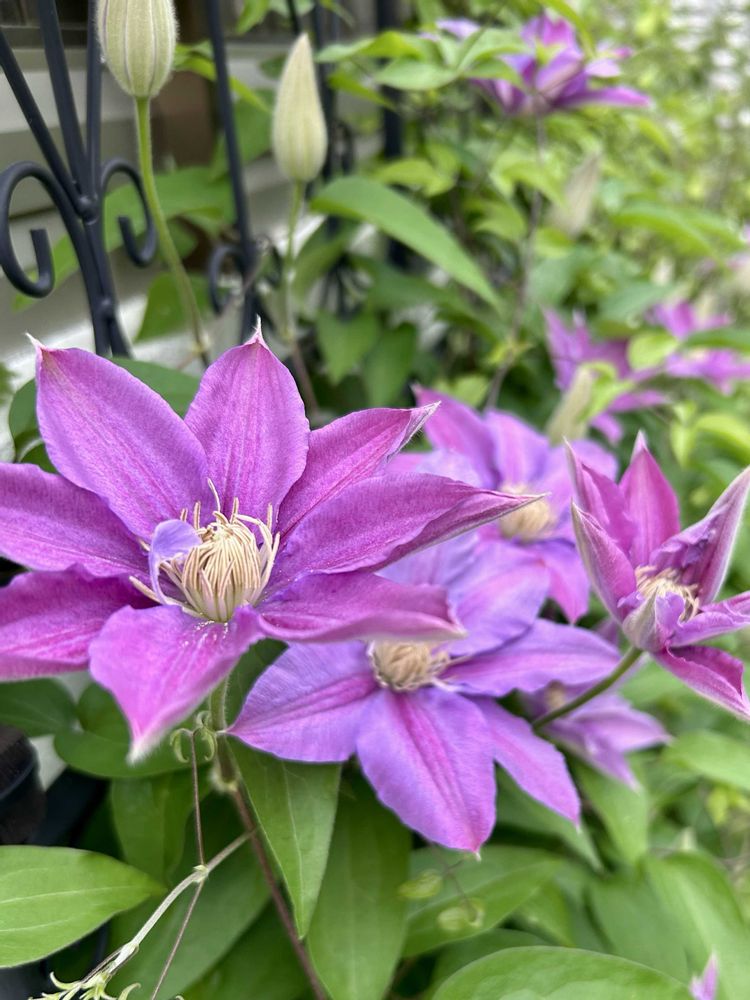 今年はクレマチスがよく咲いてくれました💜毎年少しずつ大きくなるので、その成長を見るのも嬉しいです😊
