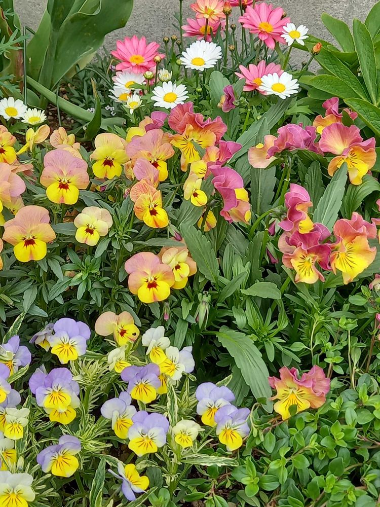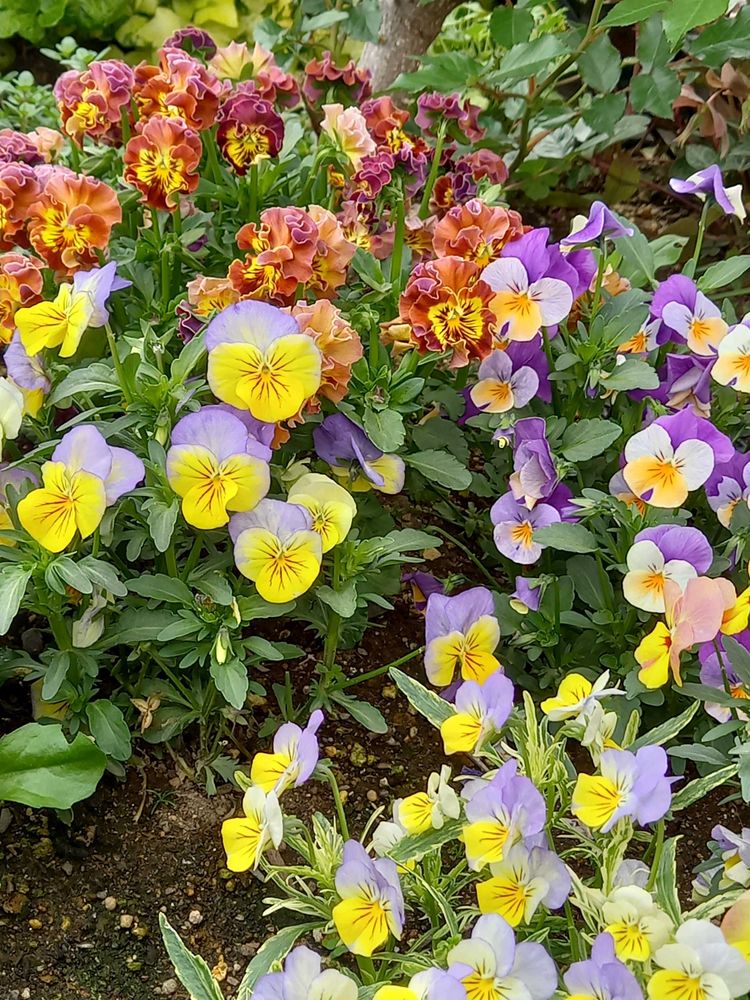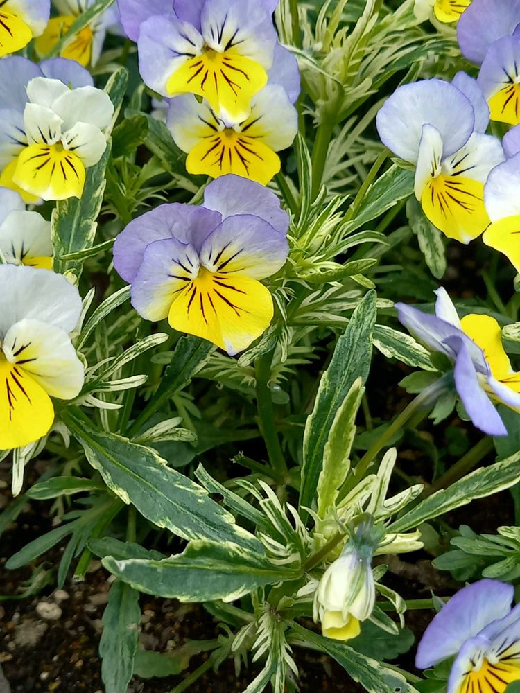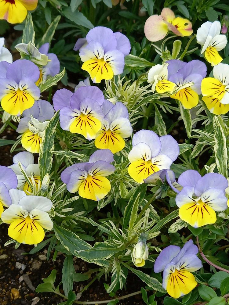 こぼれ種からのビオラが斑入りになってます!種とったら同じくなるかな( -_・)?今はまだ種はできてないようです。