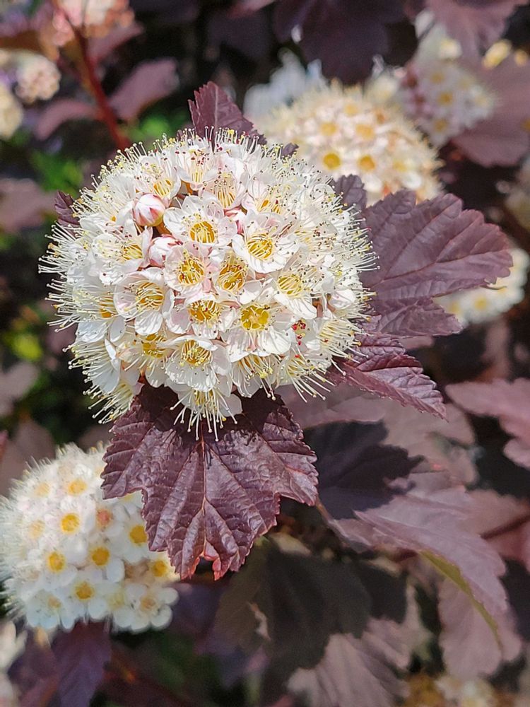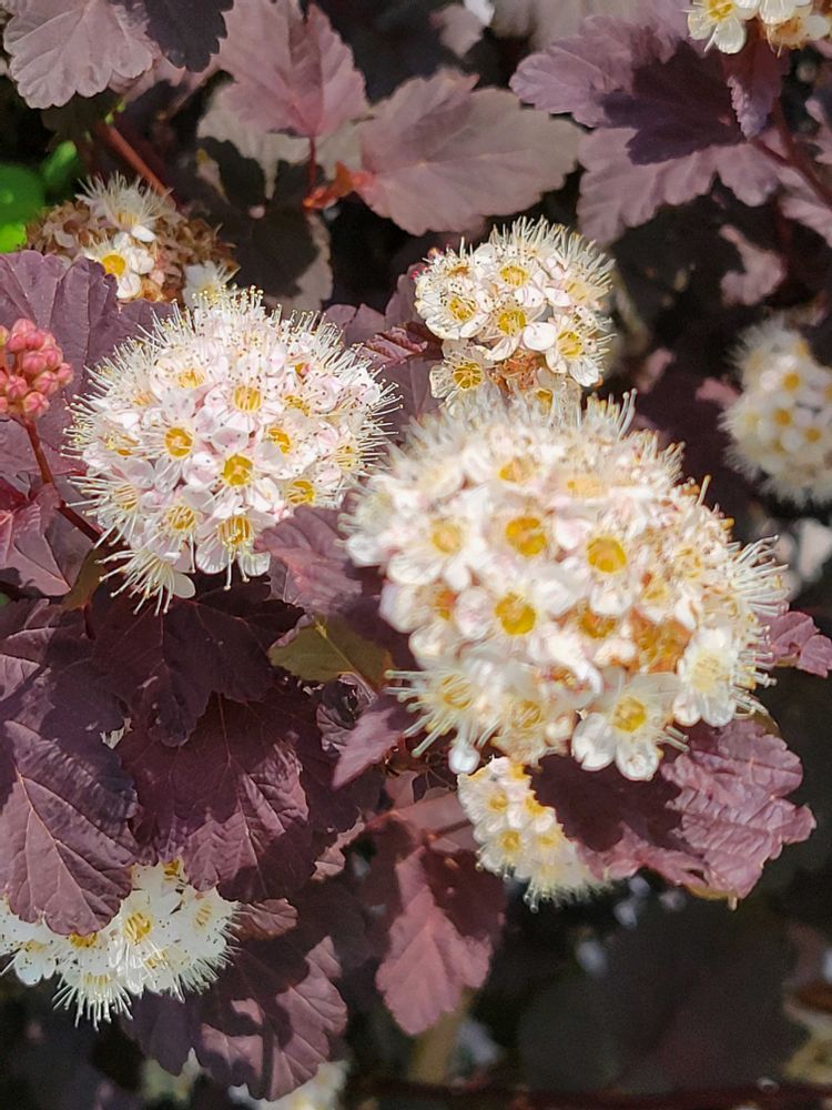 葉っぱが銅葉で、テマリのような小さな密集した可愛い花を付けた素敵な植物に初めて出会いました。