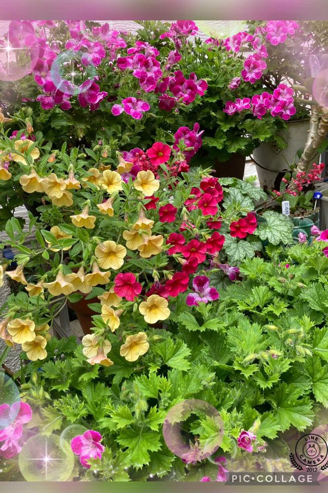 2️⃣昨年のペラルゴニウムとミリオンベルが今年も咲き乱れています🙌