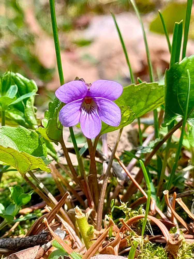 ✽地上系のないスミレで高さ3〜10cmで地下茎が伸びて増えるのでよく群生する