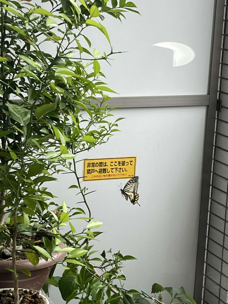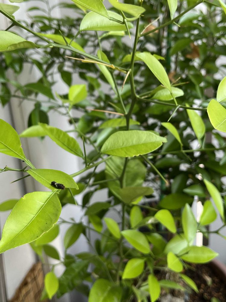 うちのベランダで越冬したアゲハ蝶が戻ってきたのか、葉っぱの裏に卵を産みつけてました。今年もたくさんのサナギの抜け殻があちこちに☺️嬉しいものです。先発隊は既に孵化して幼虫となり、ムシャムシャとダイダイの葉っぱを食べてます。