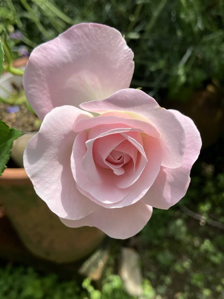 黒ポットになおざりにしていた本当に可哀想な子🌹いつのまにか咲いてそれがまた可愛い色🩷大事にします😅