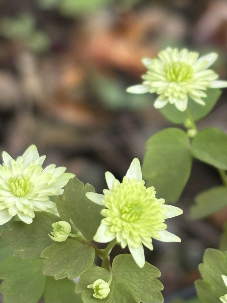 💚💚の梅花唐松目立たない恥ずかしがり屋さんのお花、木陰の下で咲いてるの🤭