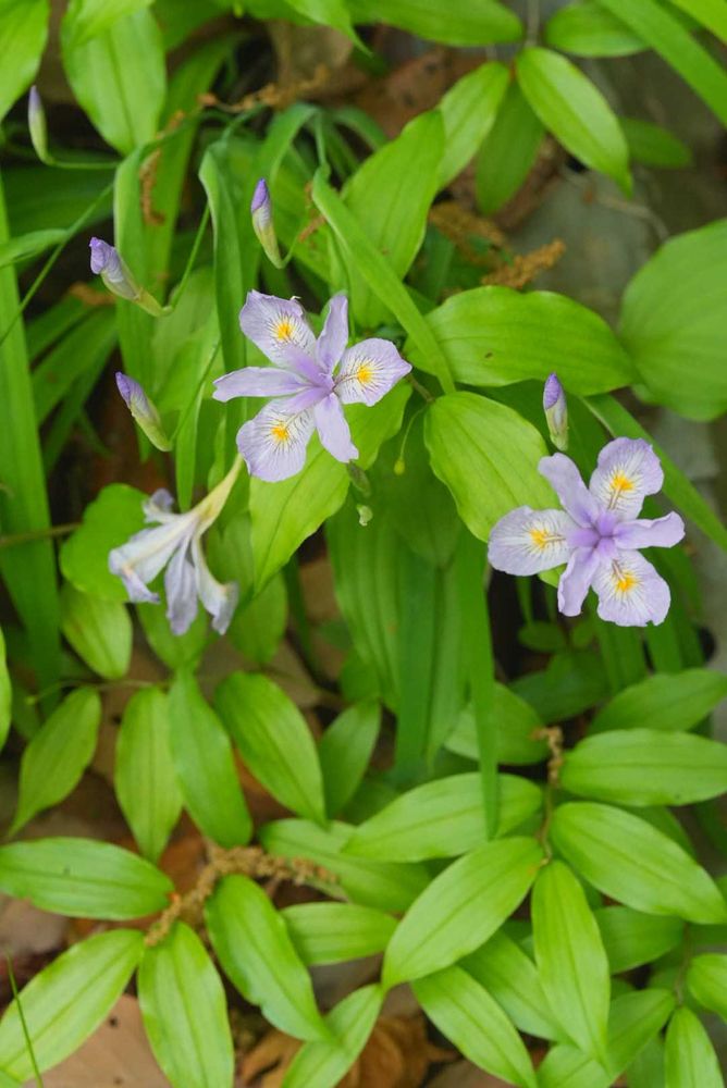 園内あちらこちらヒメシャガさんが咲いていて、シャガさんと共演中😄