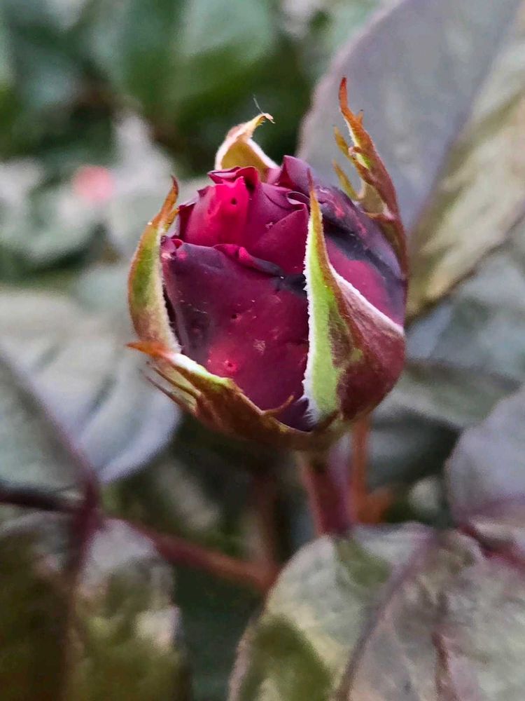 ニュアンスのある赤紫色で、咲き進むにつれて灰色みの強い濃いピンク色に変わります.