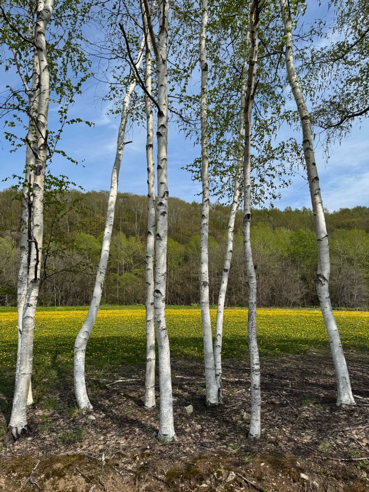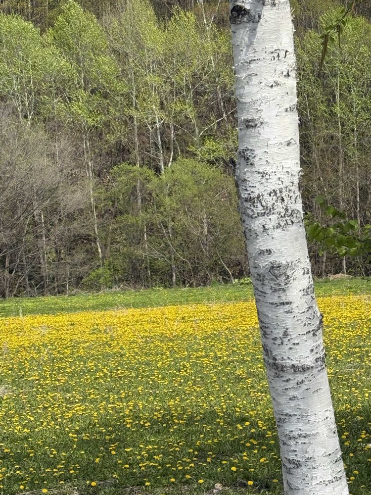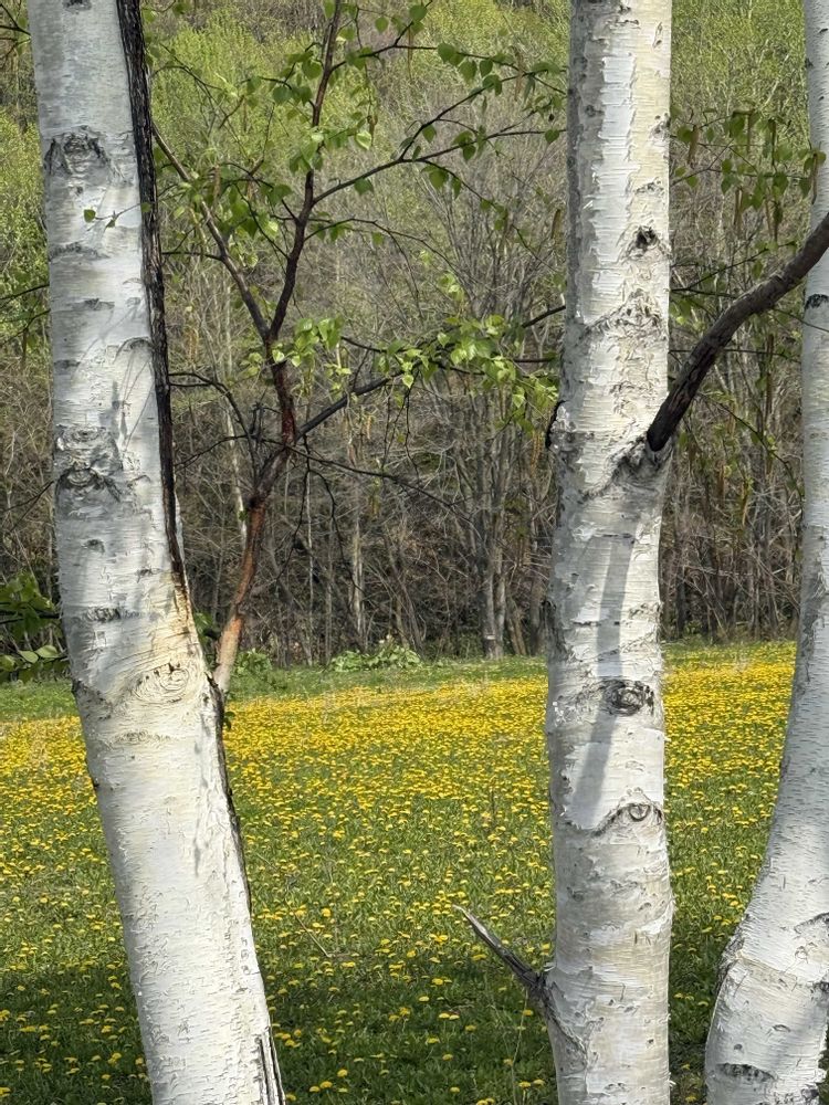 シラカバの木🌲とタンポポ🌼🌼