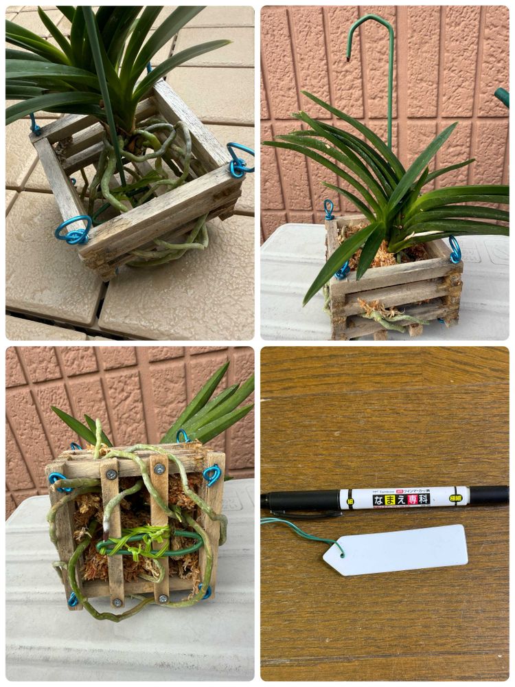 水苔を底に少し入れ、周りにウスネオイデスを保湿用に引っ掛け、名札を付けて終了です😊