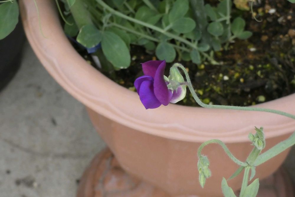 ダイソーの種から育て、最初に咲いたのは紫系のお花です。昨日の朝、撮影。