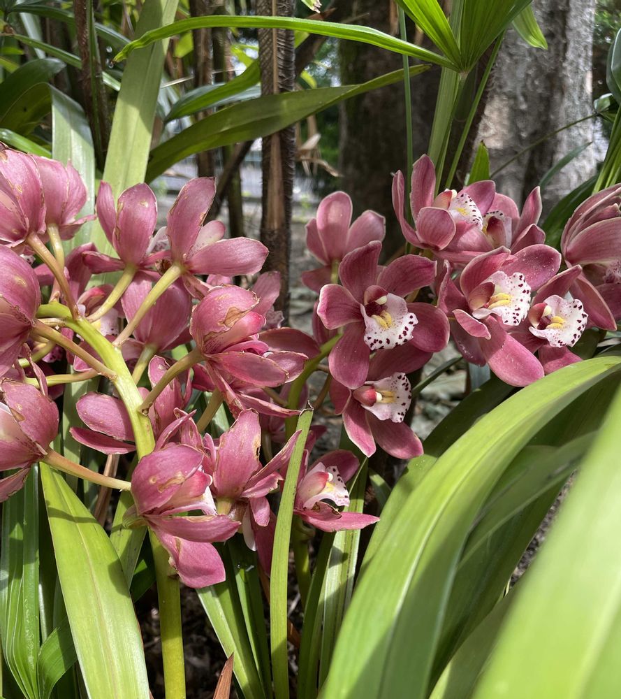 地植えのシンビジウム今年は咲かないのかなぁと思っていたら、GW明け、地面に這いつくばって花柄咲いていた😆