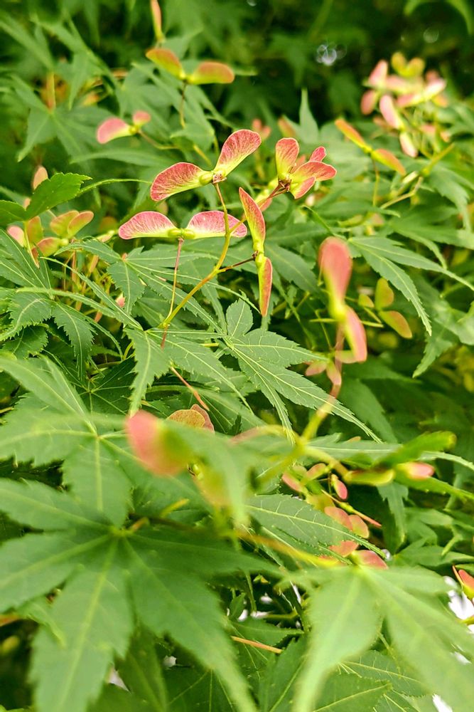 イロハモミジ、翼果が上向きに付く。