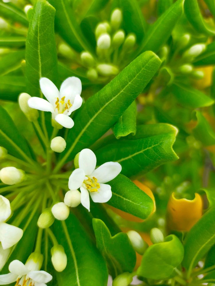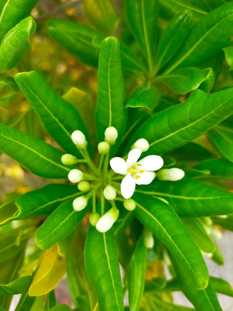 3〜ラコリーナの駐車場🅿️に咲いていた白いトベラの花