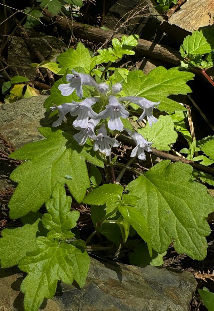葉は対生し5角状心形で不揃いの浅い切れ込みがあります。