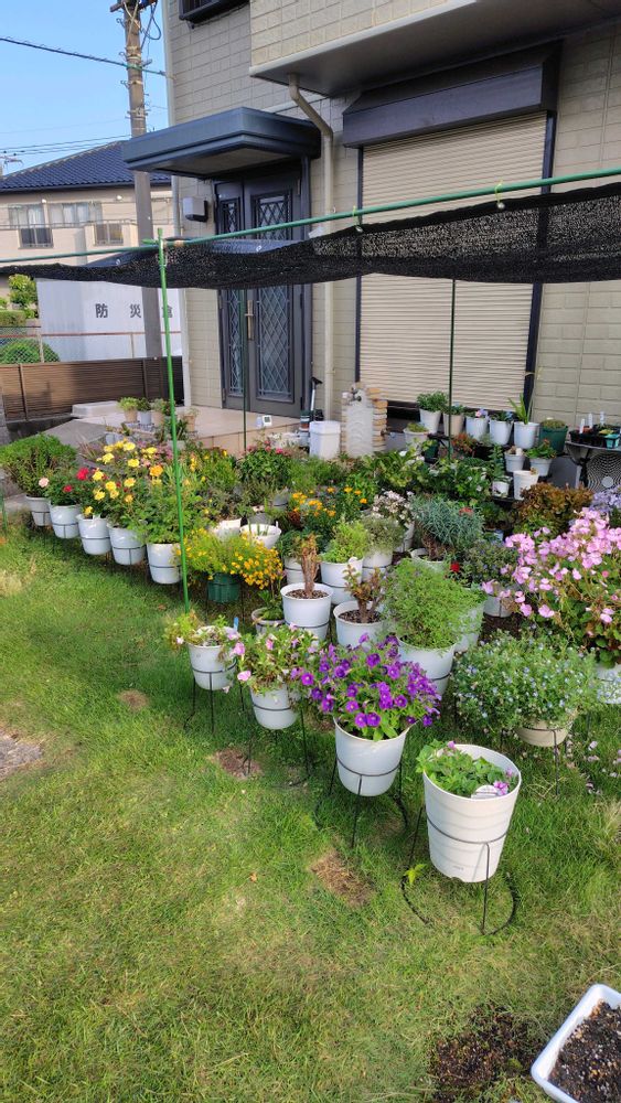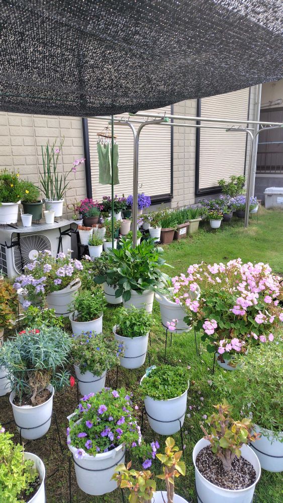 うちの庭のお花達もまたまた増えてしまいましたので、遮光ネット下と軒下組のお花達の席替えを昨日やってみました😊