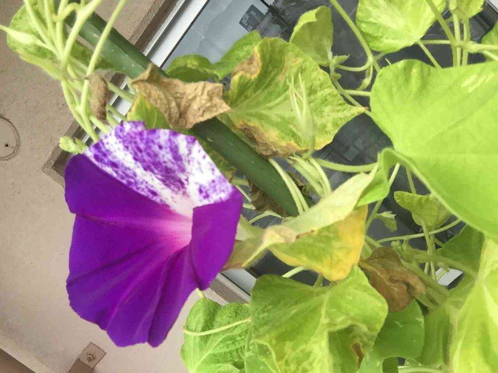 ゆいさんのバルコニー/ベランダ,黄斑入丸葉紫吹掛絞丸咲,花のある暮らしの投稿画像