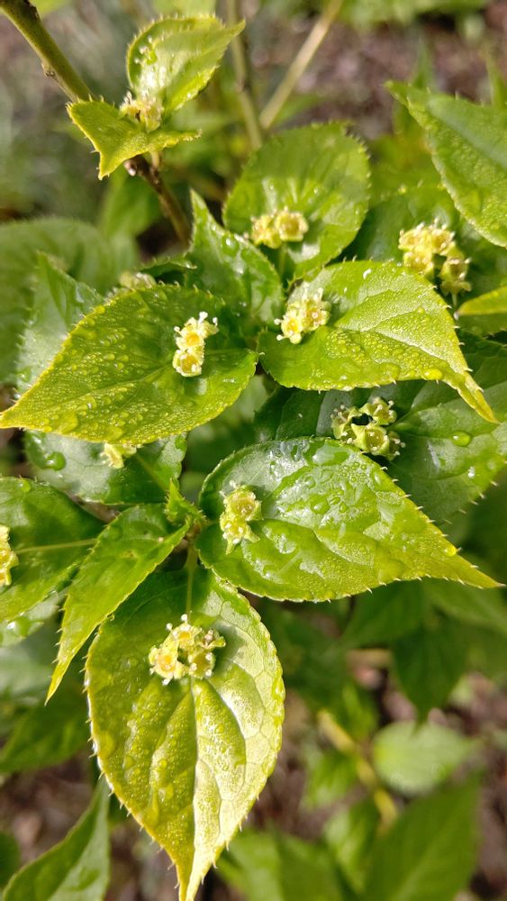 コメント有難うございます。ハナイカダの不思議な姿に興味を持って育てています。雌雄異株なので両方の株を植えていますが実が付くときと付かない時が有り、付かない時のほうが多いデス。気候のせいなのか?場所が合わないのか?分かりません😭