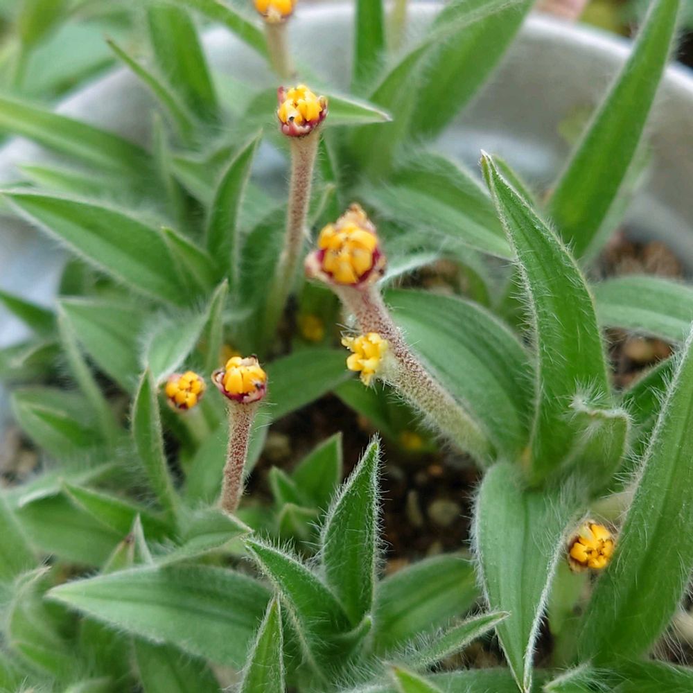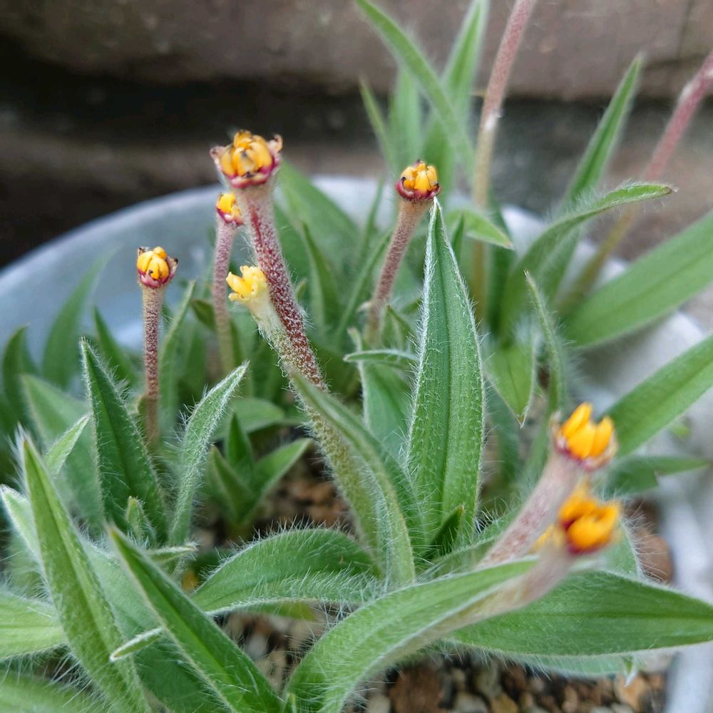 黄色のアッツザクラはなかなか花数が増えません〜モリモリになって欲しいのに〜ポツン、ポツンと、省エネで咲いてくれます〜🤭💛✨