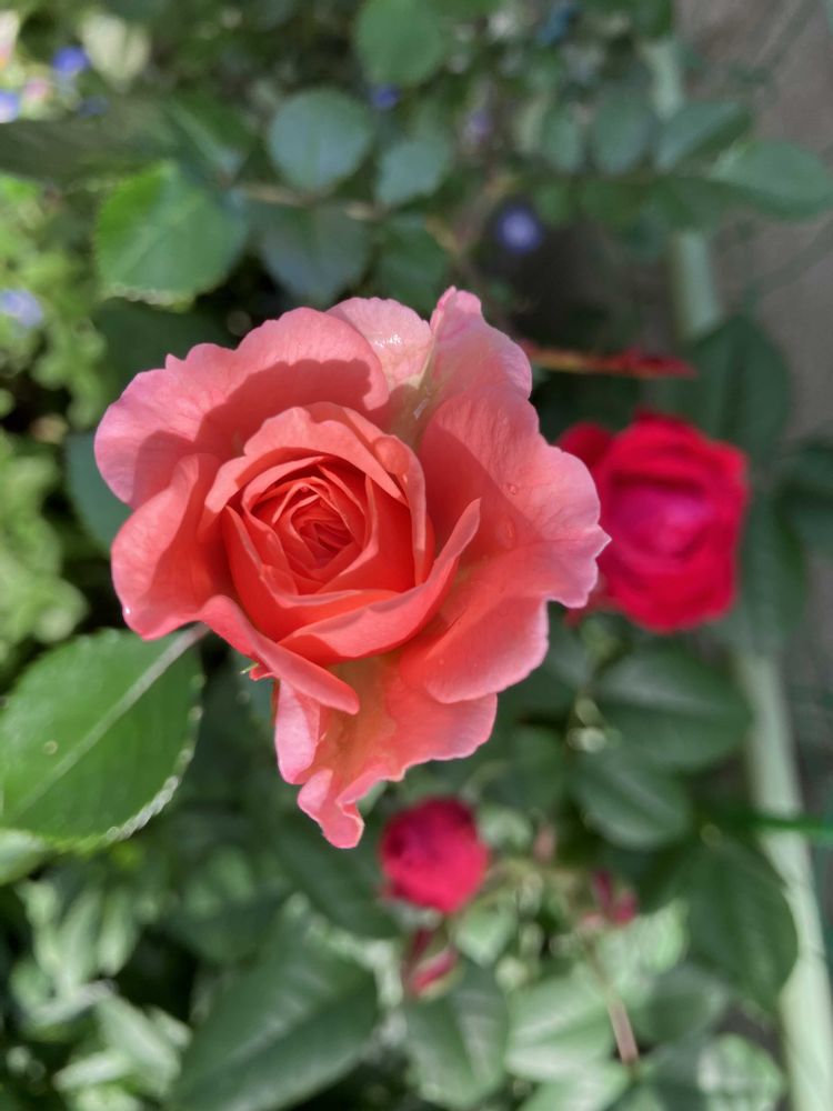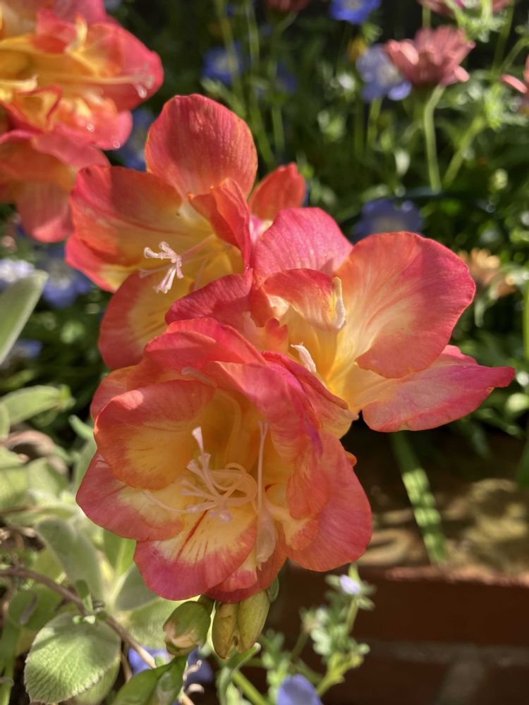 アプリコットカラーのお花が開花すると、一気に花壇が明るくなります🧡🩷
