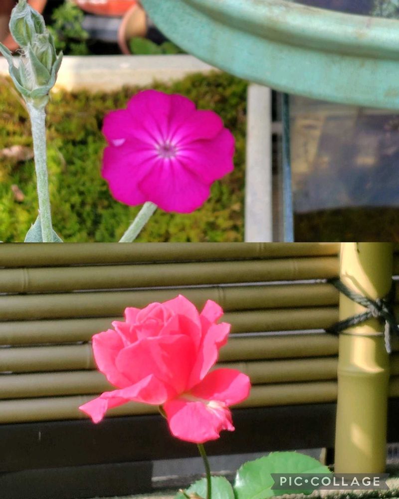 ①今日の朝くらいに咲いているかな と思っていたらやっぱり咲いていたバラ🎵スイセンノウはあと2日ぐらいかなと思っていたら 今日の朝咲いていました