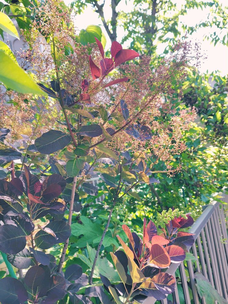 朝日で、マルベリーとスモークツリーの赤系の色合いが目に入ったので📷しました。