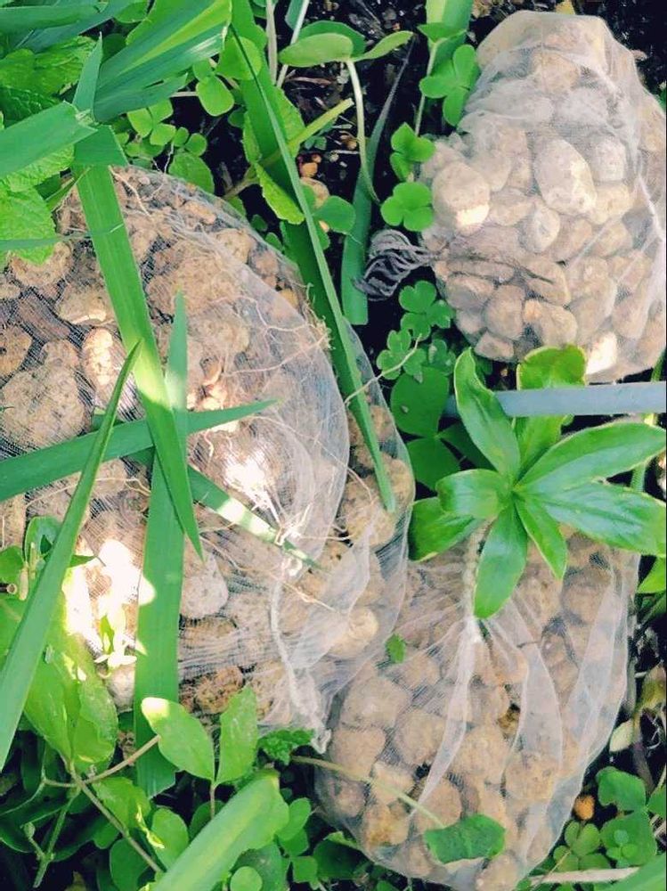他の植物に埋もれるので、目についた底石袋を周りに仮置き。虫除け&乾燥予防の、鉢の土カバーを買ったはずなのに紛失。何か対策しなければ💦💦