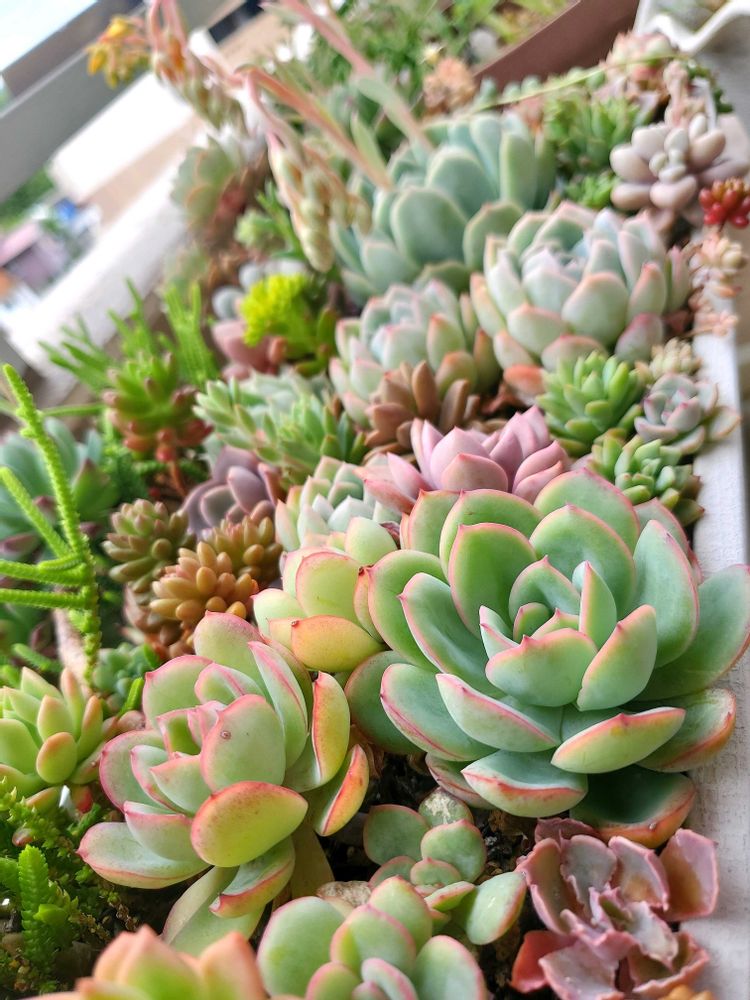 多肉5年生になりました(*´﹀`*) 狭いベランダでチマチマと🎶 癒しを求めてニヤニヤ眺めています•*¨*•.¸¸♬︎ 今年度中に引越しのため、どうやって運ぶか悩み中……🤔