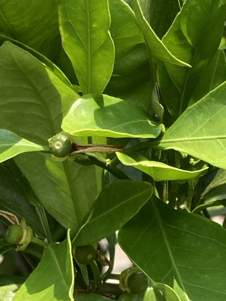 白い花を咲かせていた温州みかんの実もミカンらしい形をしています。