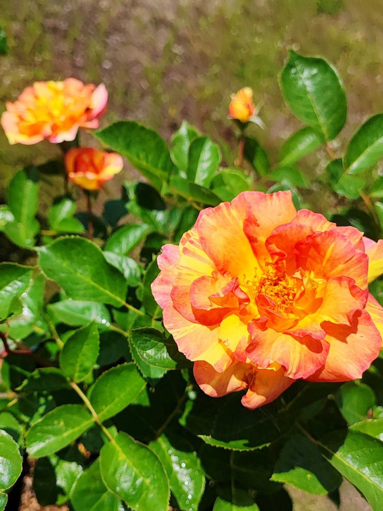 すっごい好みのオレンジピンクと黄色の絞りのバラが咲いててあなた誰!?ってなりました。