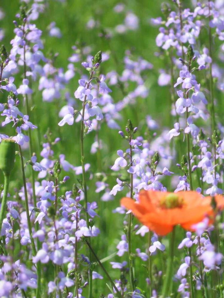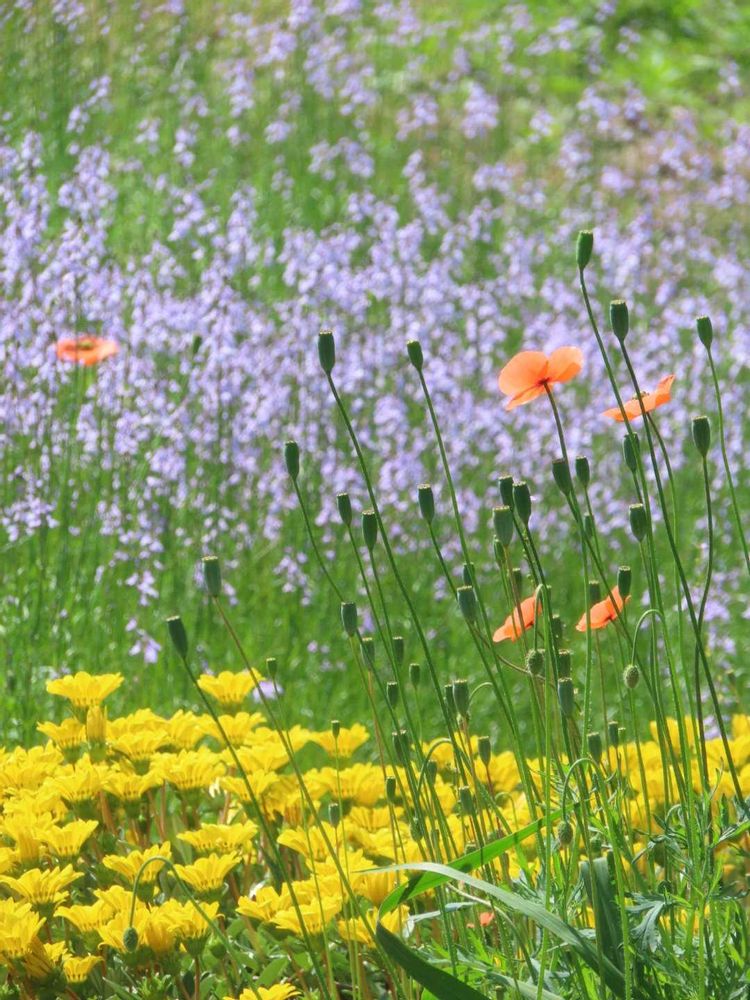 マツバウンランとガザニアの群落に可憐なナガミヒナゲシが加わり、春らしくカラフルで素敵でした。