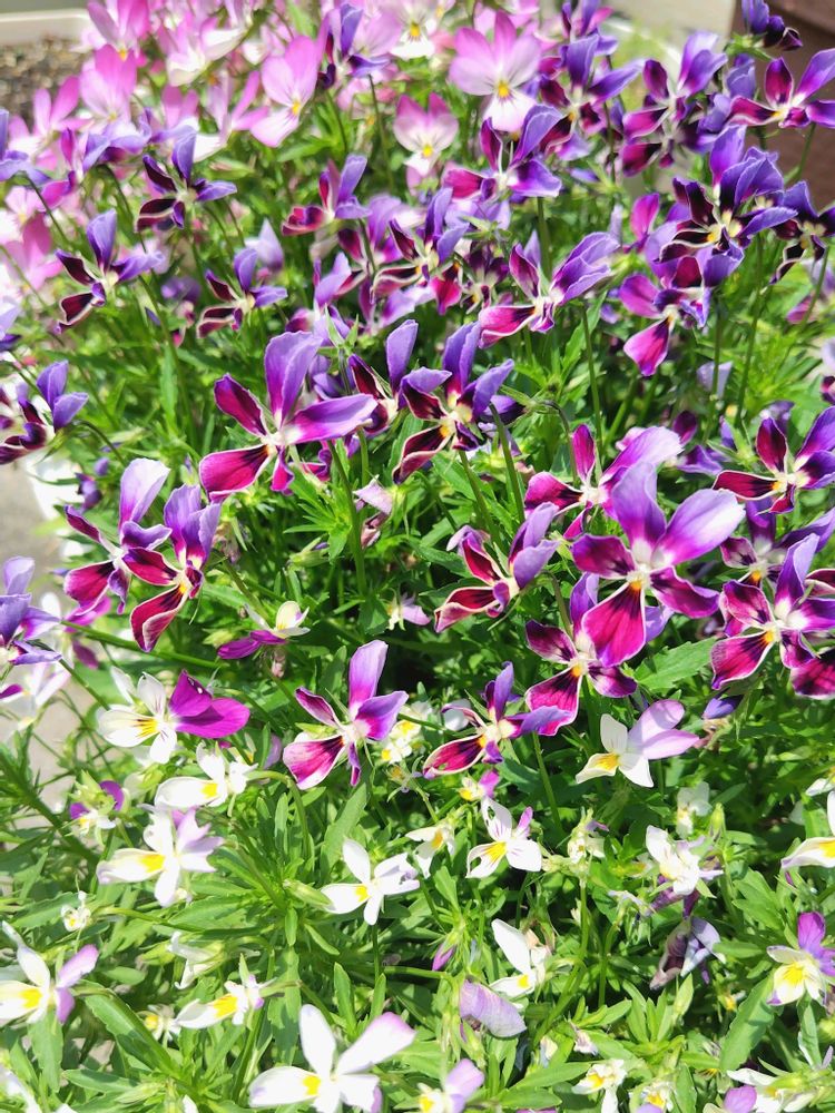 「シュガーラビン・ミステリアスバニー・ひだまりラビン」まだまだ旺盛ですが、花びらが虫食いにあってしまっているお花も多いです💦普段は良い香りをビオラも放っていますが、バンマツリに香りは負けちゃうかな😅