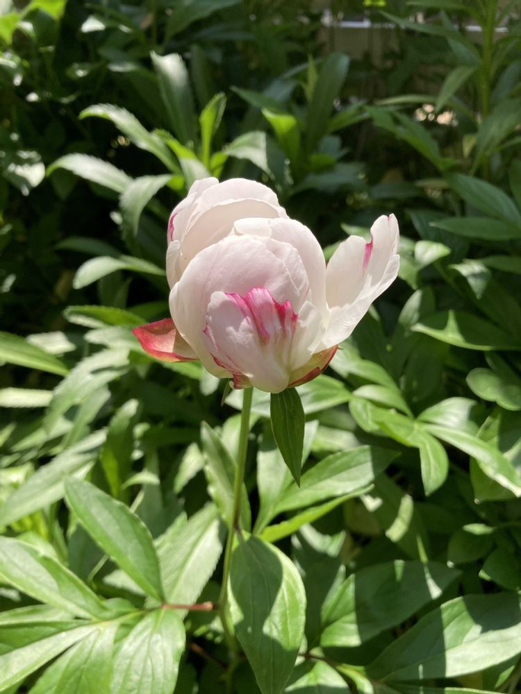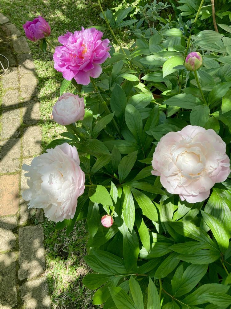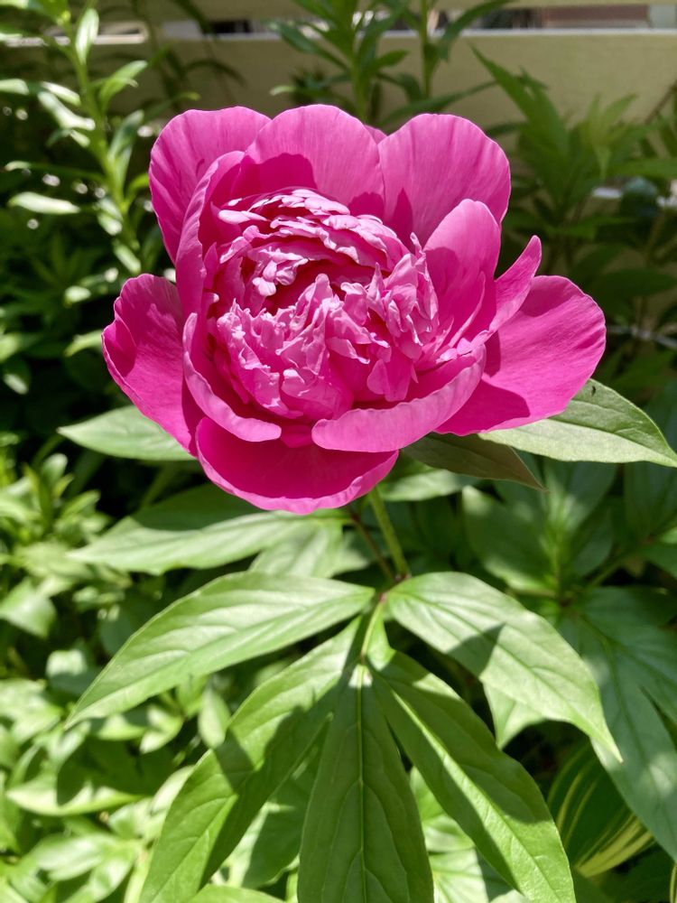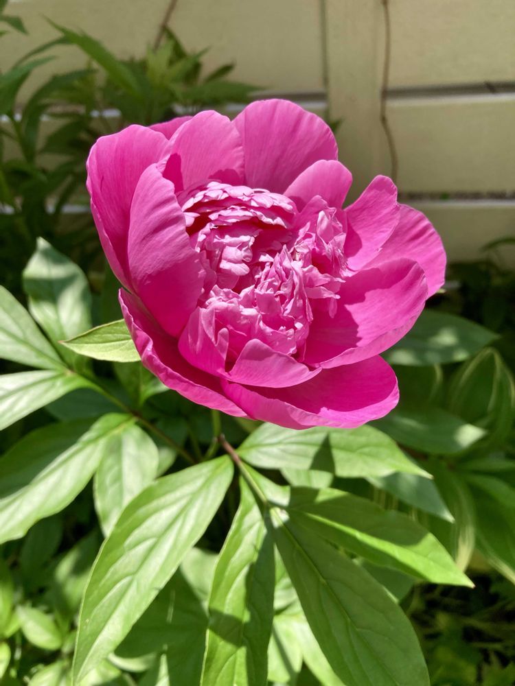①②シャクヤク バンカーヒル 長らく行方知らずだったバンカーヒル。 2020年5月に庭の奥で咲いていたので、植え替えたきり、5年ぶりに咲きました(開花5号)