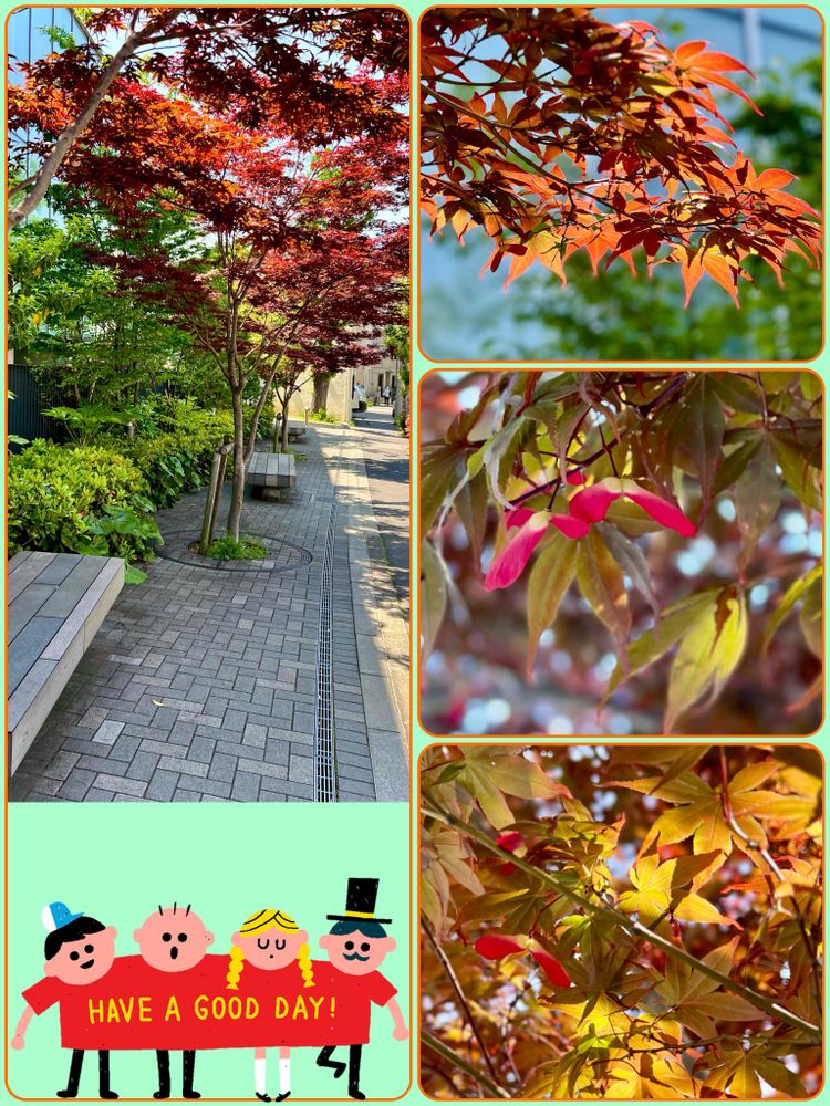 ノムラモミジ、最初から赤く新緑の中で目立ちます🍁