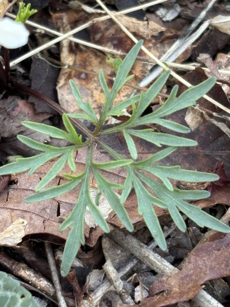 ■⑤の葉をよく見ると正確には3全裂で(側裂辺が更に深く切れ込んでる)、完全な5全裂ではありません。現地で見て混乱しましたが、いがりさんの図鑑によるとヒゴスミレの5全裂とはこういう葉を含むようです。ハンドブックでほぼ5全裂という表現をしてるのはこのためだと思いました