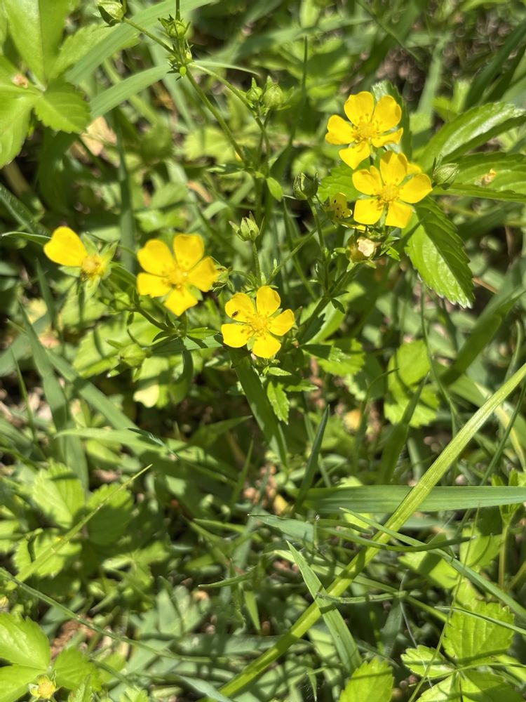 野原に咲く黄色い花がかわいくて、近所でよく見るミツバツチグリかなと思ったら違いました。