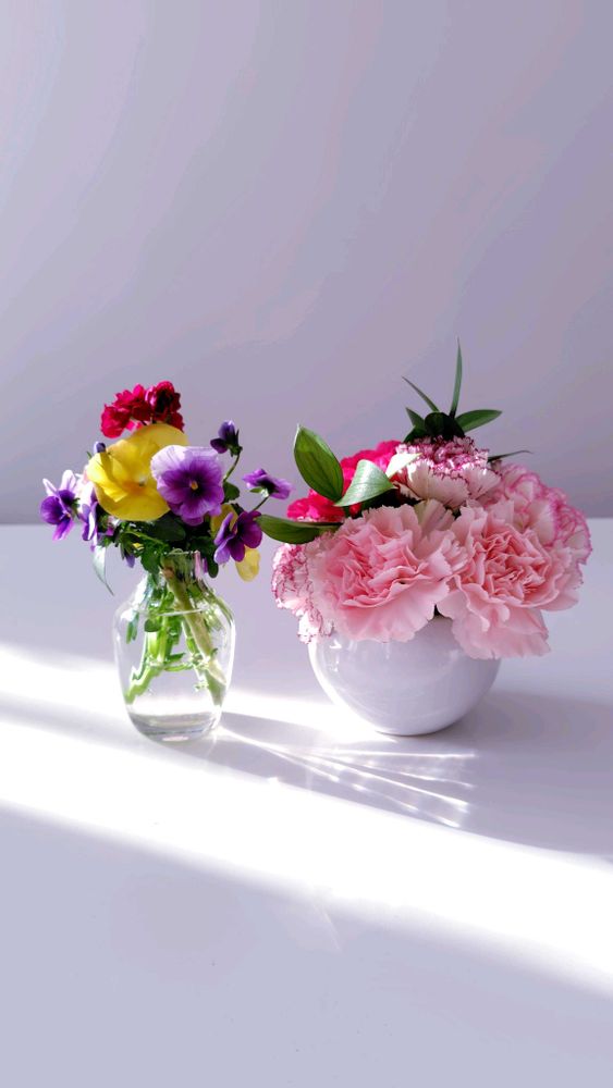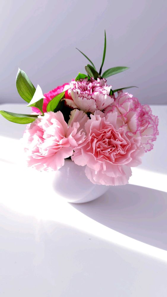 カーネーションは短く切って丸い花瓶に( ´͈ ᵕ `͈ )♡