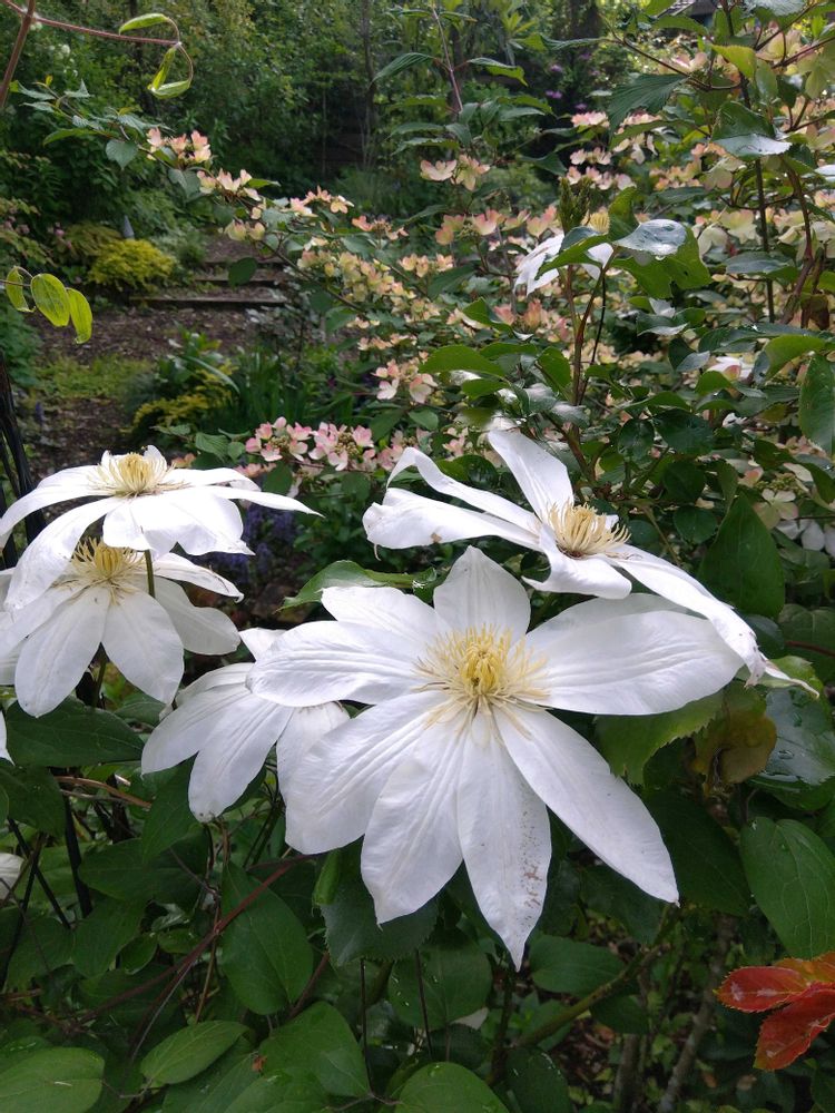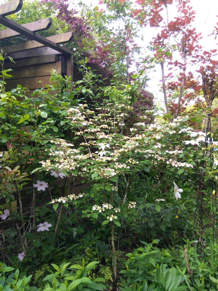 クレマチス ドーンもかげからこんにちはしていました🌸