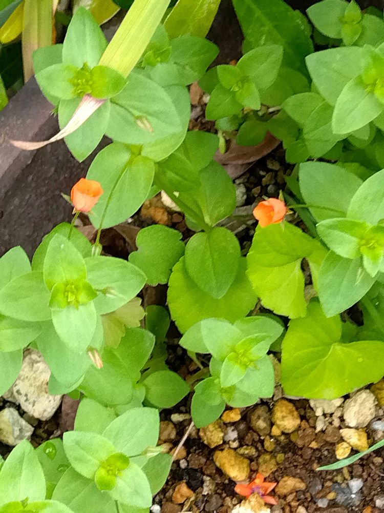瑠璃ハコベ、紅花も残っています🎵 ワイルドストロベリーも大きな株に成り、実が出来ています🎵酸っぱいけど‼️😅