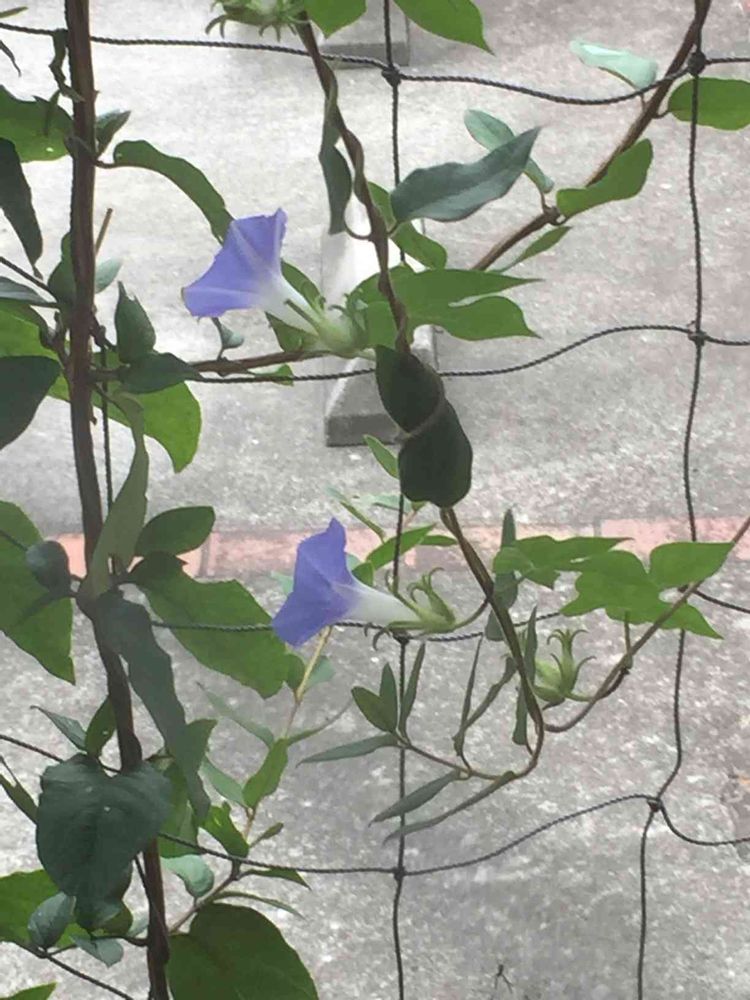 西側の日よけに絡まる 毎年こぼれ種で咲く
