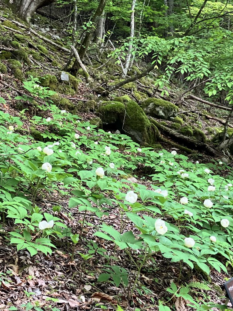 ヤマシャクヤク、ここのは完全な自生というより保護されてる感じですが、それでもこれだけ群生してると見事です✨