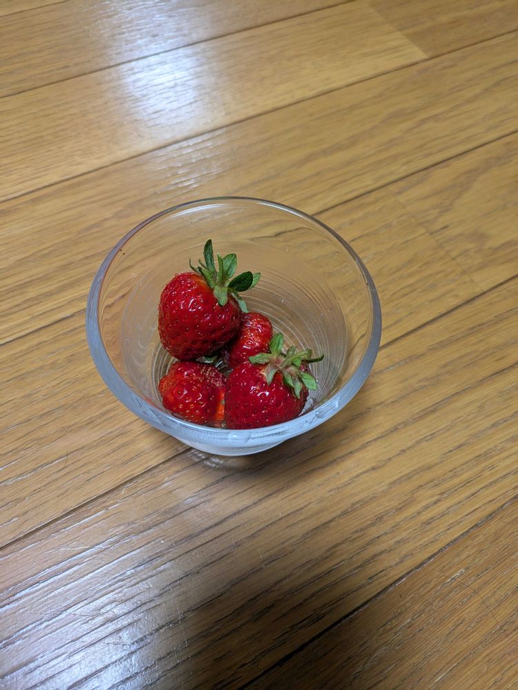 妻と娘には形の良いものを食べてもらって私は受粉不良の変形イチゴを食べました。