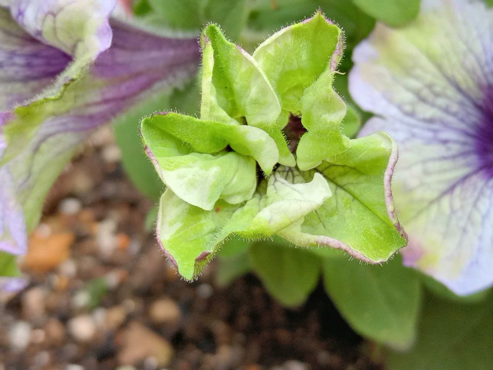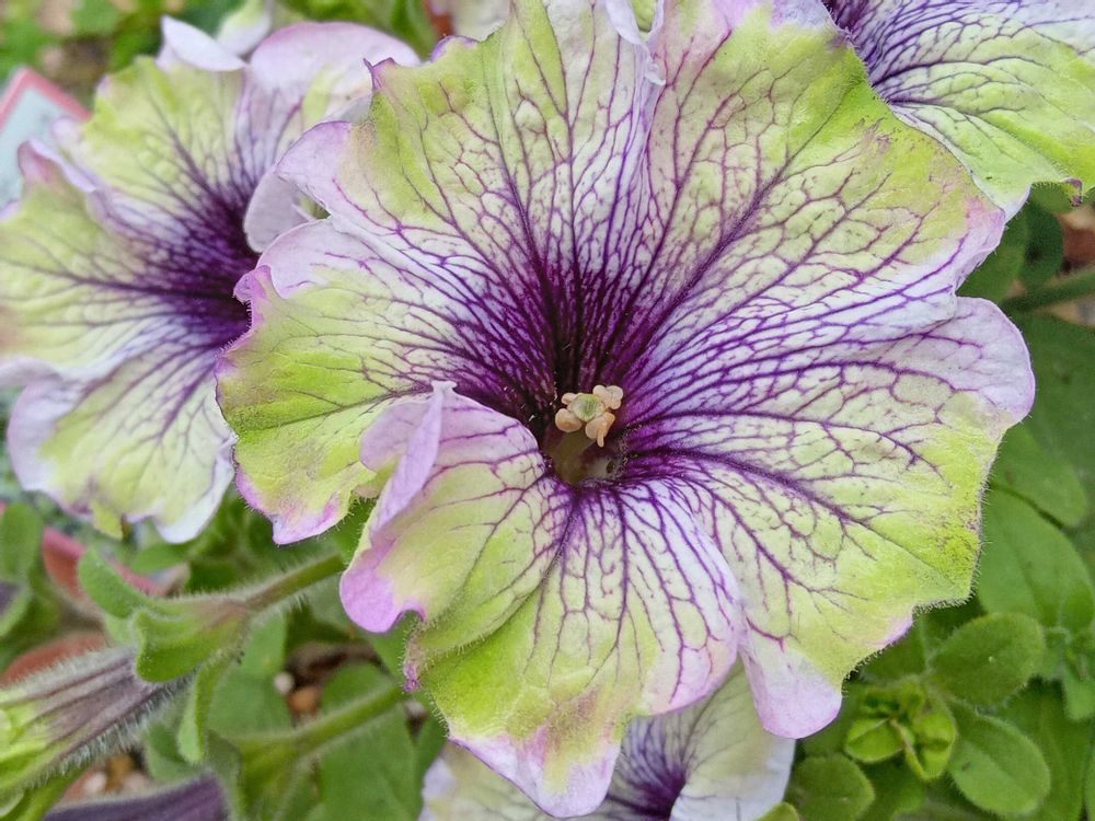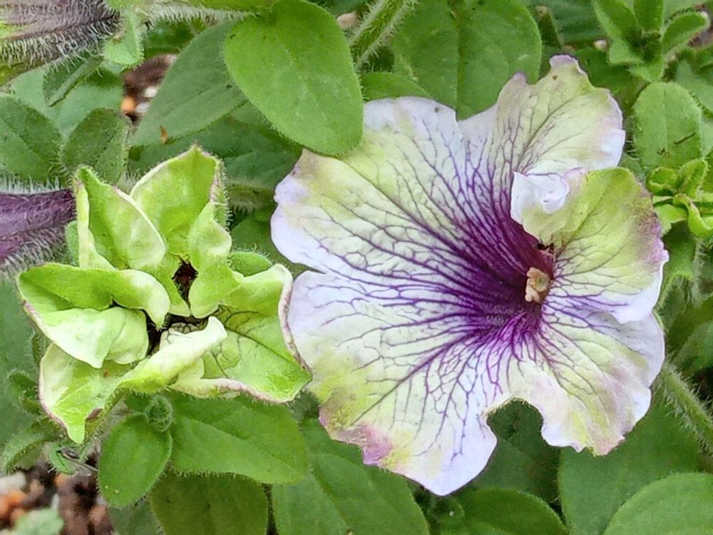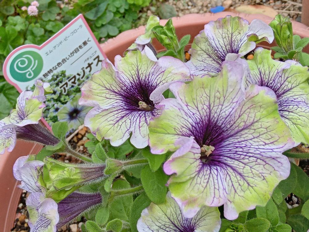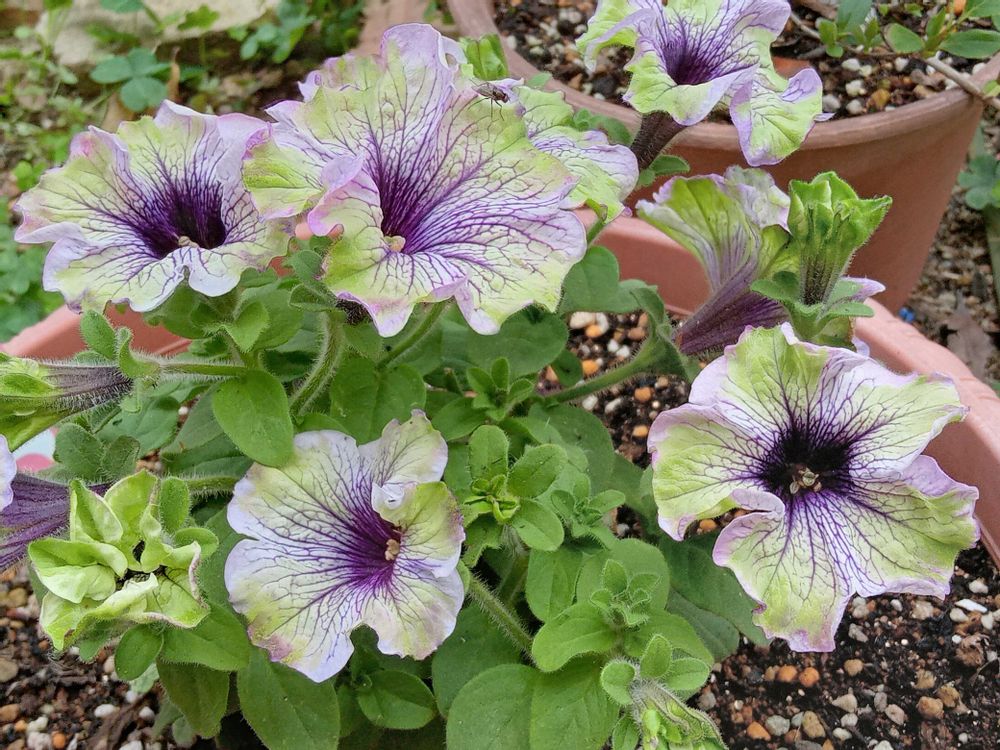 こちらも 個性派 ペチュニアさん💚🤍💜