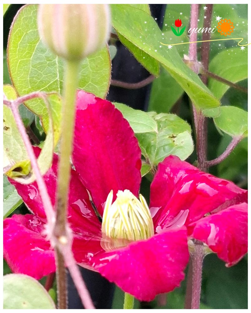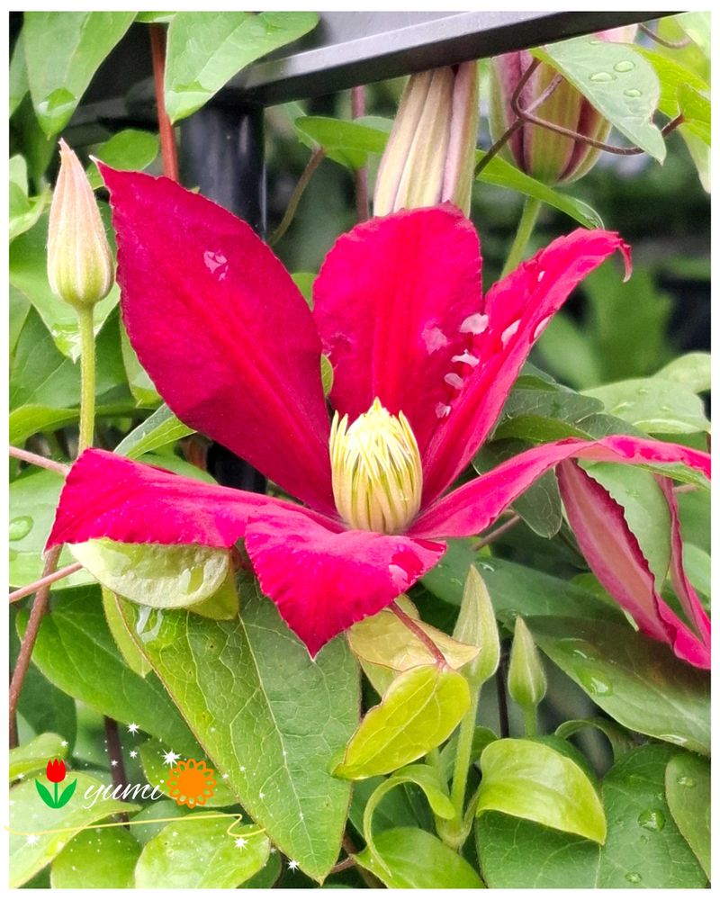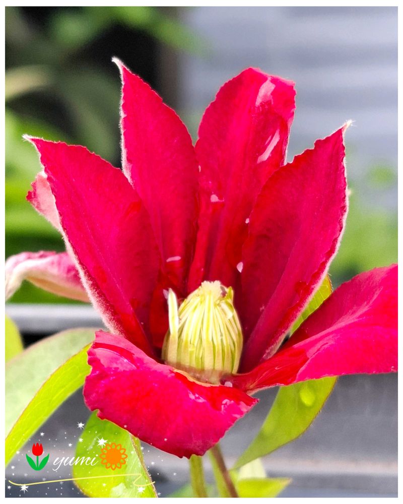 鮮やかな赤いクレマチス、綺麗ですね💕