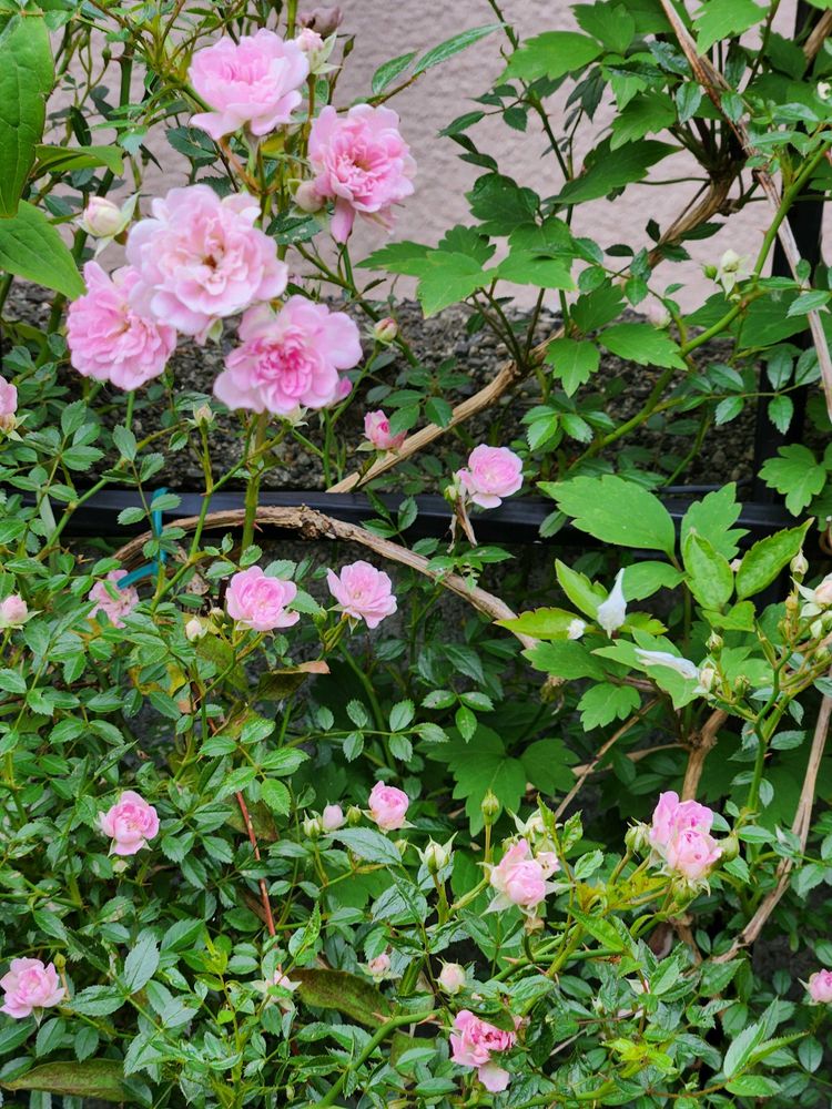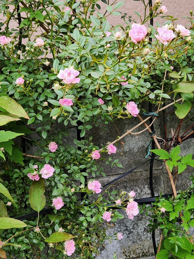 ピンク色のつるバラ、咲いたら見て下さいね😀